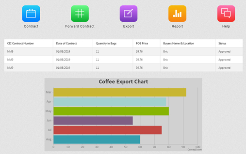 The development of the Online Export Registration System is a new initiative and will be designed to collect and analyze export contract registration coming from the coffee dealers. This system will be hosted in a PaaS platform to engage all the stakeholders of the coffee export with the CIC.